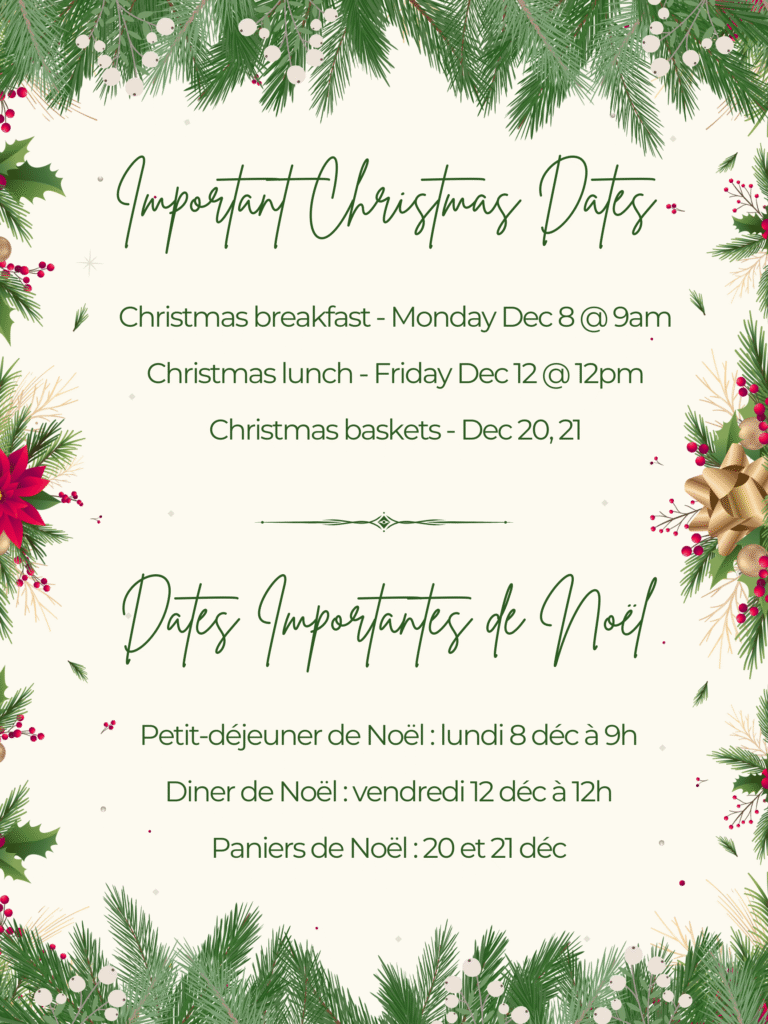 Chaque année, la Mission sert plus de 10 000 repas, remplit 10 000 sacs d’épicerie, et fournit des services essentiels à ses membres. La Mission n’est pas seulement une soupe populaire, elle offre une structure, un but et un sens à ses membres qui font face à la pauvreté chronique, sont démunis ou vivent en marge de la société.